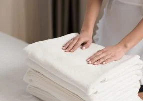 Pokojská nese ručníky
