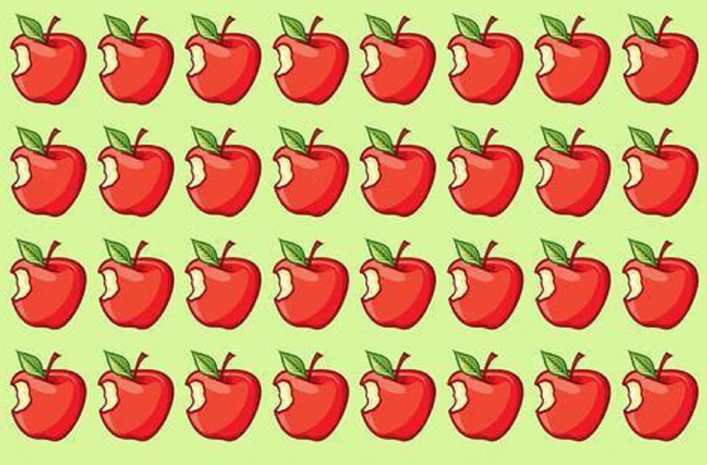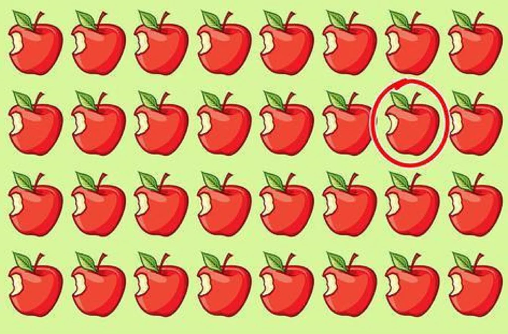 Zařaďte se mezi 10 % nejpozornějších lidí. Stačí během půl minuty najít na úvodním obrázku jablko, které se v nepatrném detailu liší od ostatních.