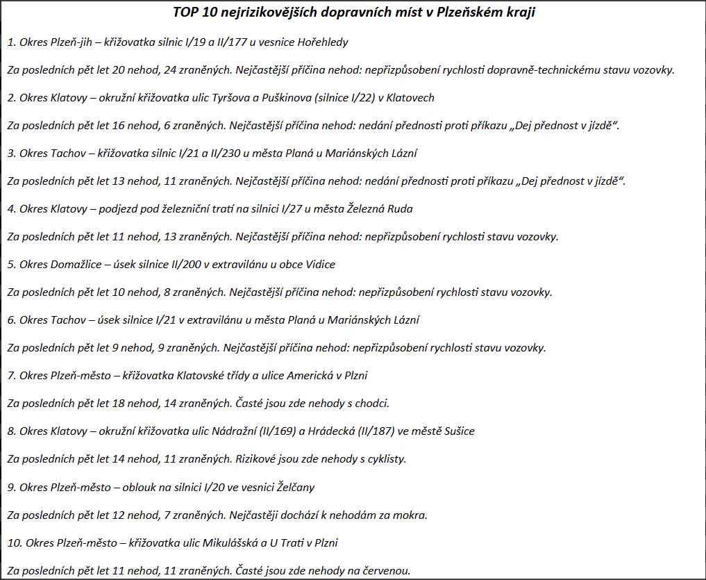 - Známe desítku nejrizikovějších míst na silnicích v Plzeňském kraji